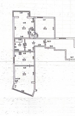 Площадь: 97 м2 (комнаты: 19-25.5-21.4м2)